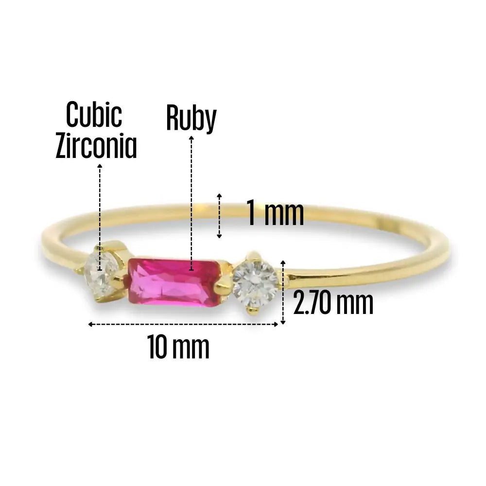 Baguette Ruby 14K Gold Ring Dainty Simulated Diamond Accent