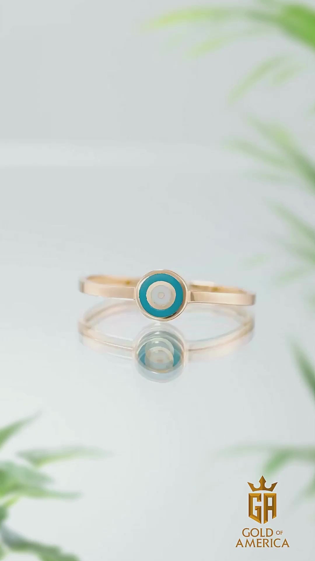 14K Solid Gold Circle Evil Eye Ring Turquoise