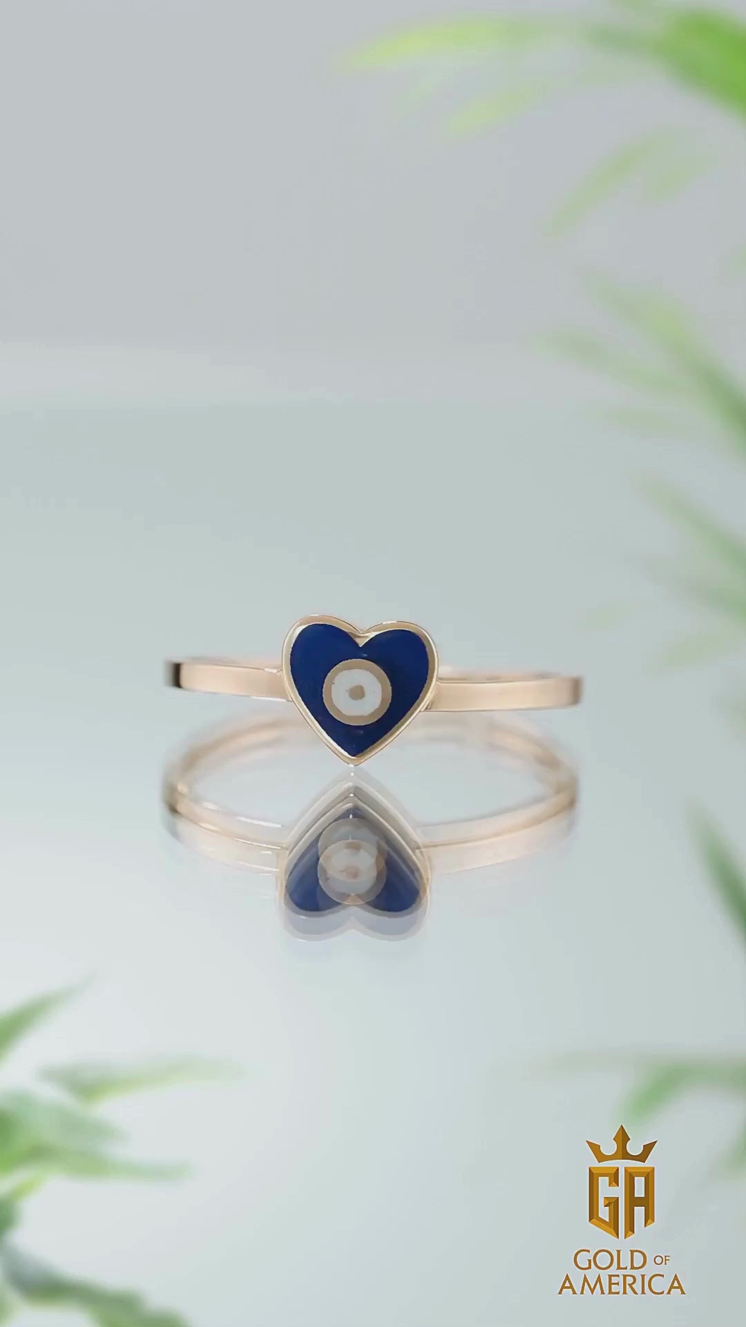 14K Solid Gold Heart Evil Eye Handmade Ring Blue