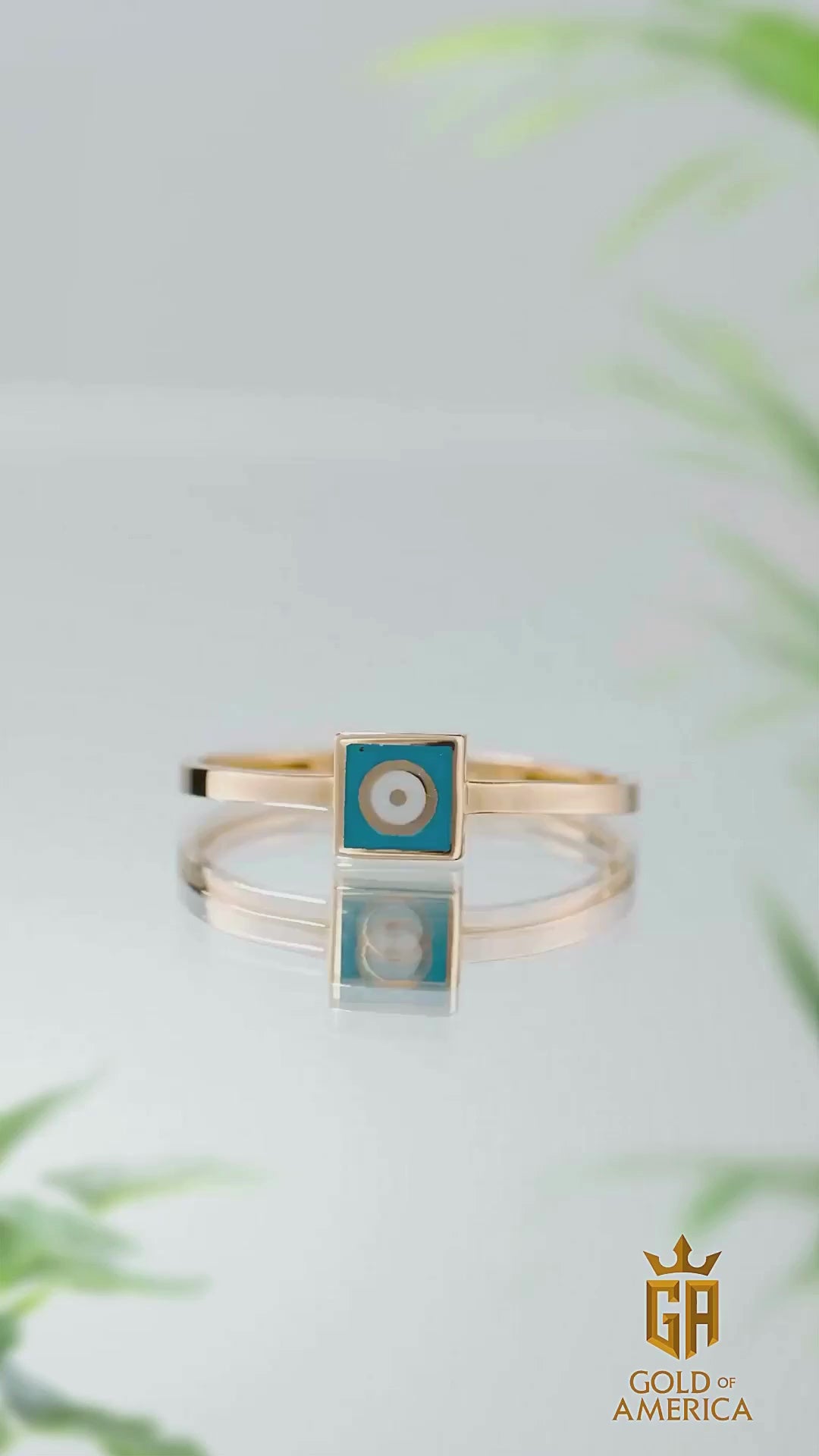 14K Solid Gold Square Dainty Evil Eye Ring Turquoise