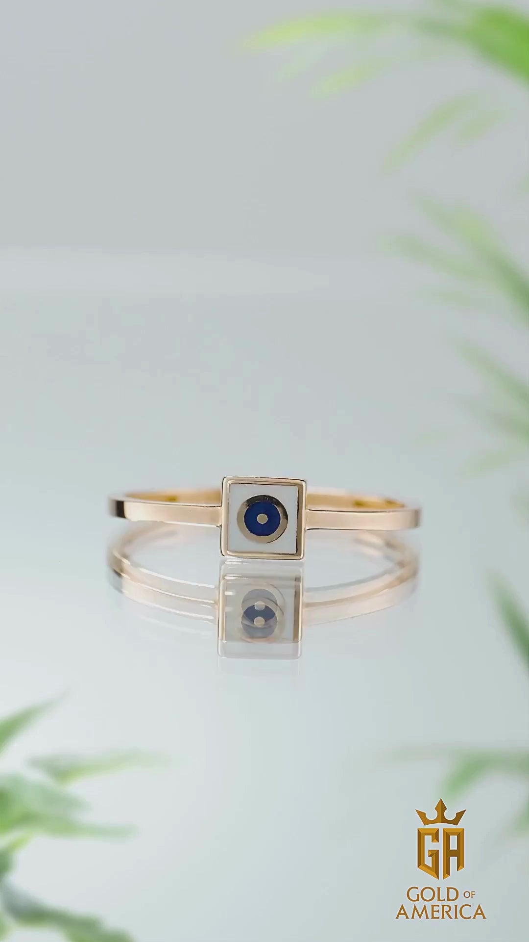 14K Solid Gold Square Dainty Evil Eye Ring White