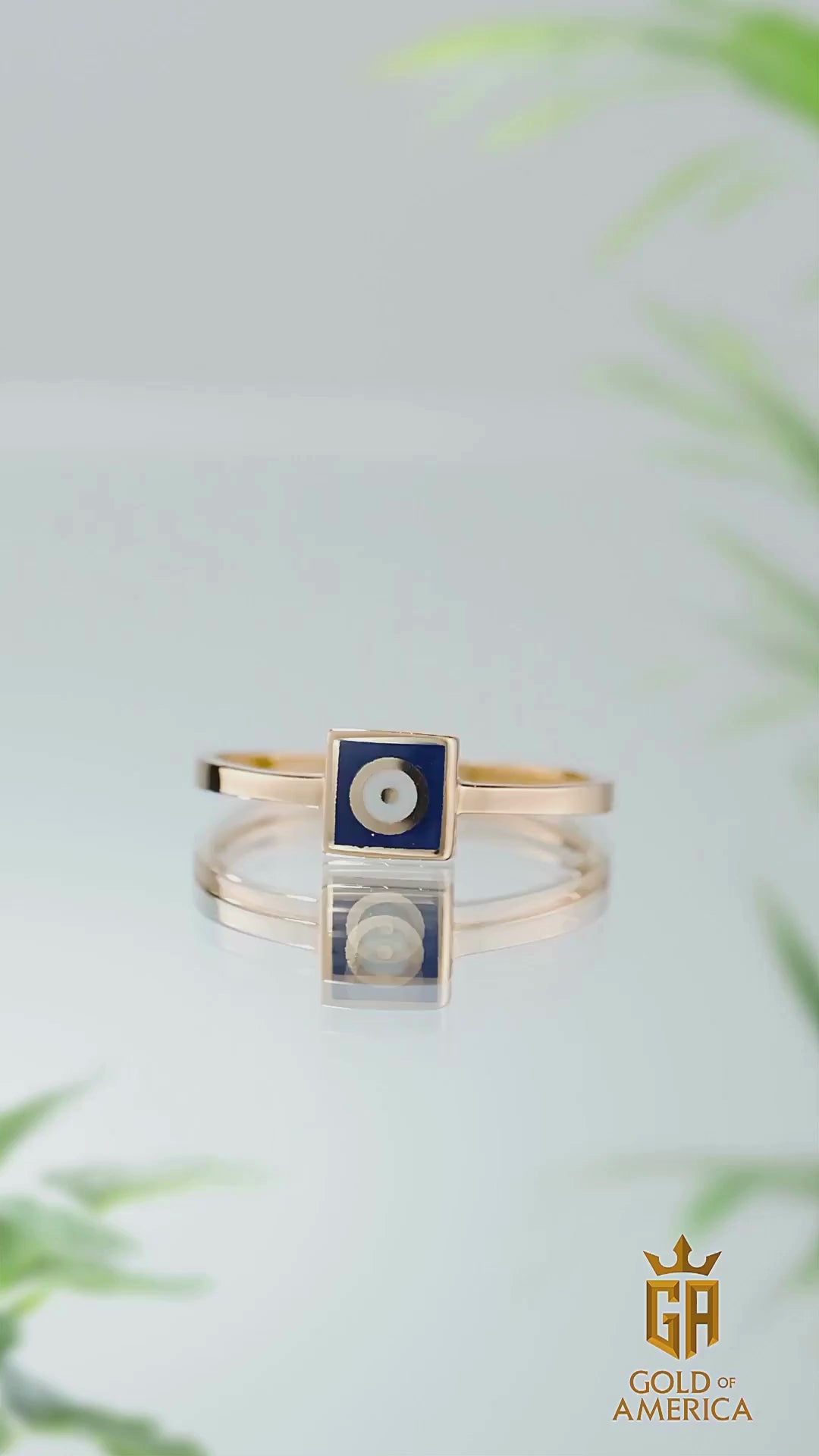 14K Solid Gold Square Dainty Evil Eye Ring Blue