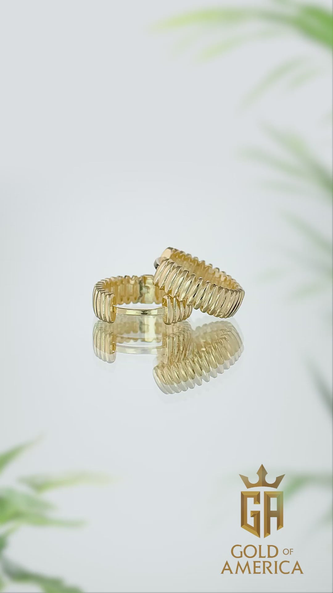Handcrafted 14K Gold Croissant Hoops, Ribbed Design for Women, Jewelry for Her