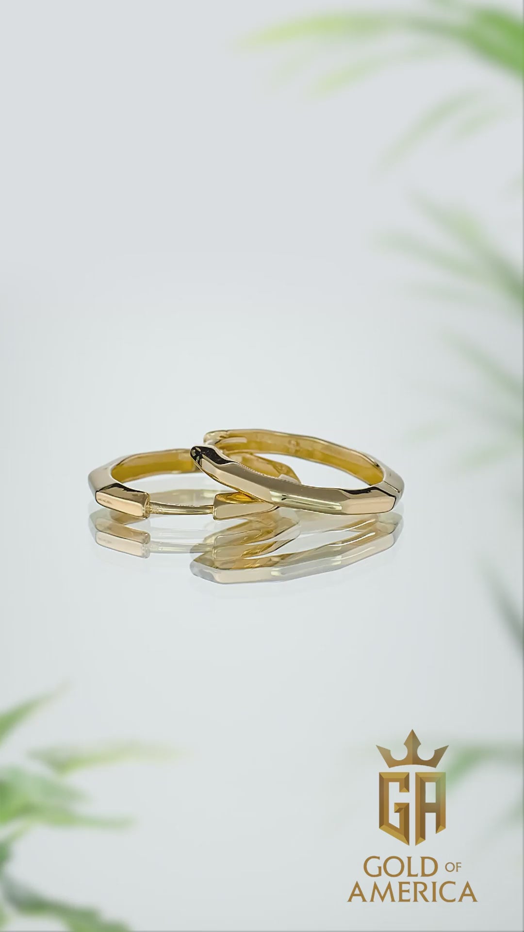 Handcrafted 14K Gold Hexagonal Hoop Earrings | Geometric Solid Gold Hoops for Women