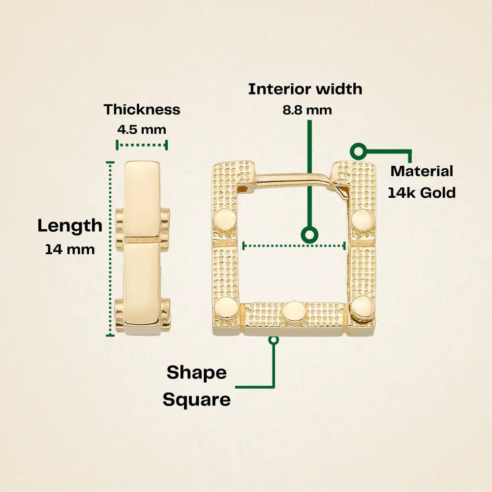 Discover the luxury of our 14 mm square huggies and everyday earrings. Are you looking for 14k solid gold hoops and thick gold earrings, here is the geometric earring and wedding gift ideas.