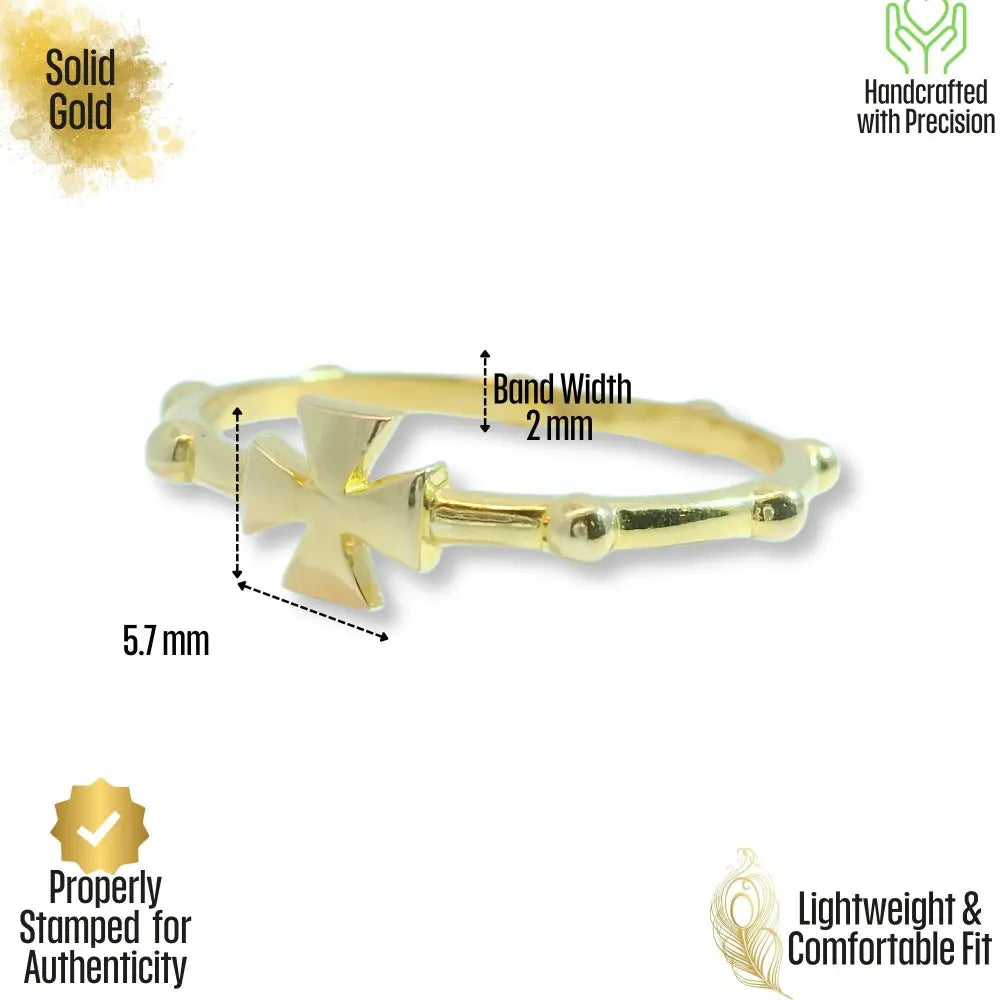 14K Solid Gold Cross Rosary Ring Christian Gift For Women Men