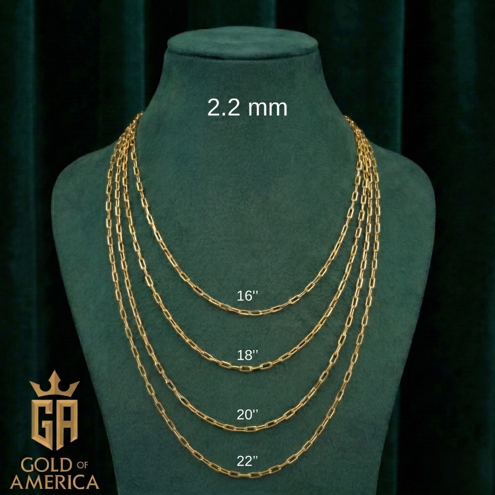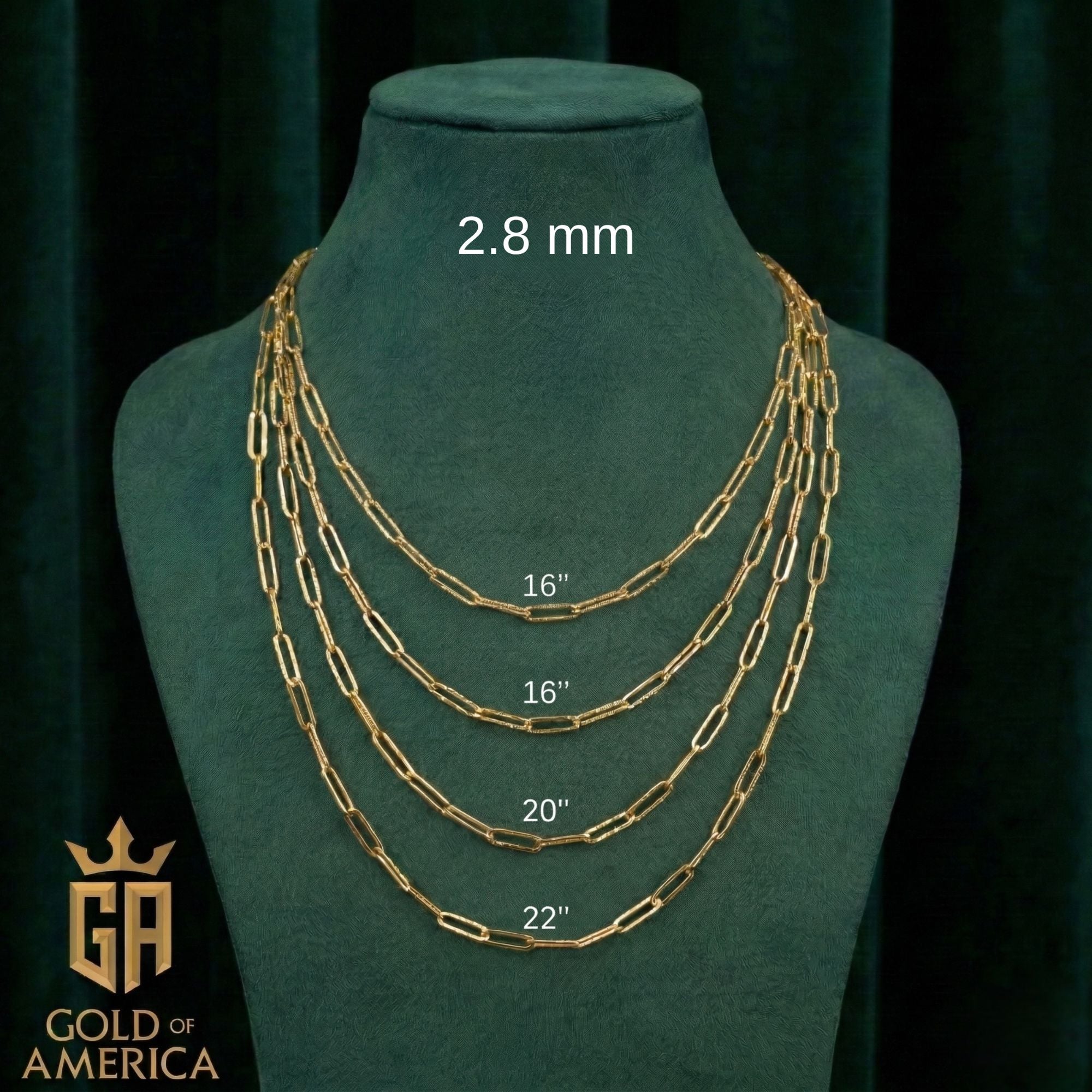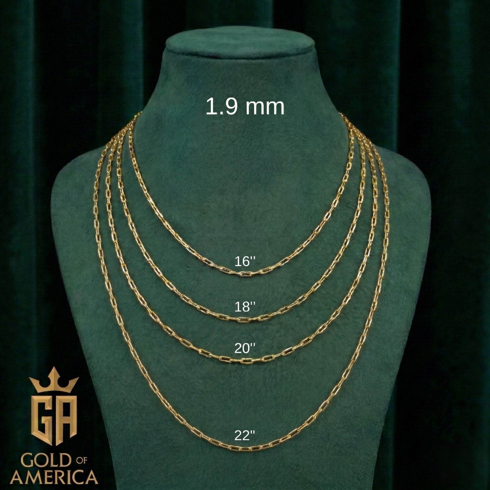14K Solid Gold Paperclip Chain Necklace, 1.9mm 2.2mm 3.4mm, 16 18 20 Inch, Trendy Rectangle Link, Minimalist Jewelry Gift, Layering Choker