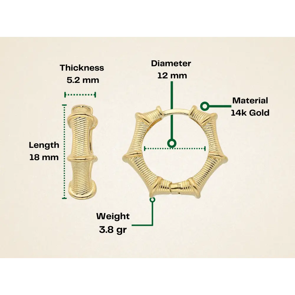 14K Gold Bamboo Hoop Earrings – Ribbed Huggie Push Lock Hoops