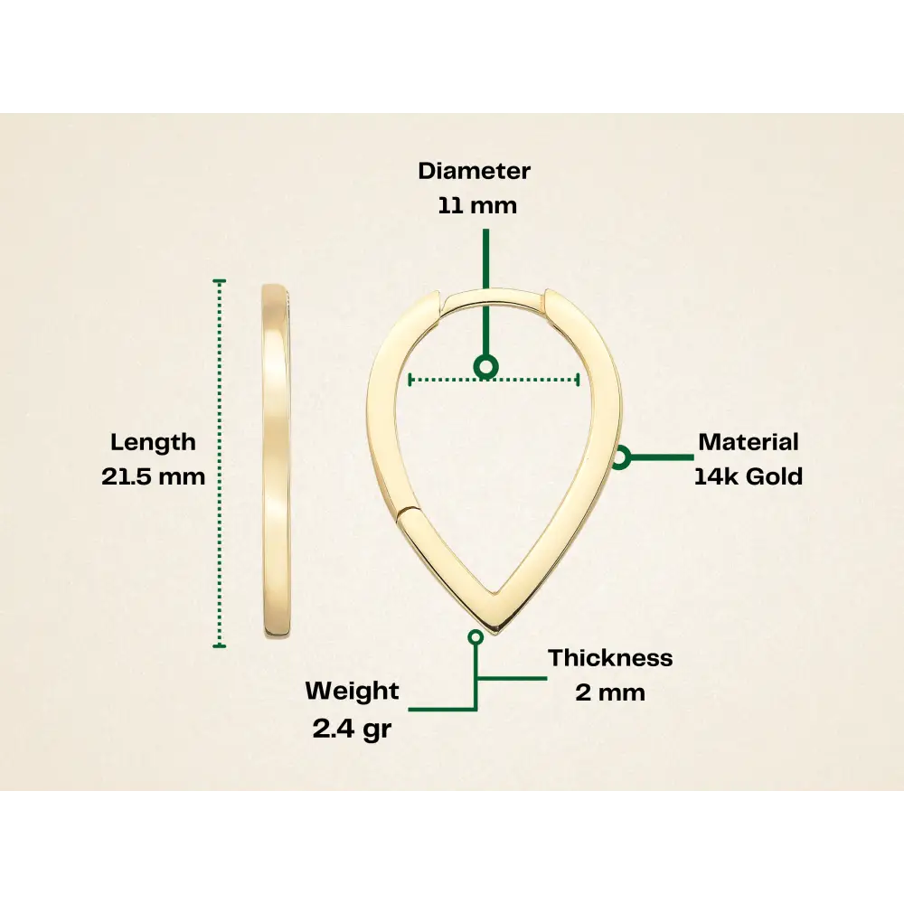 14K Gold Teardrop Triangle Earrings | Hinged Hoops Huggies