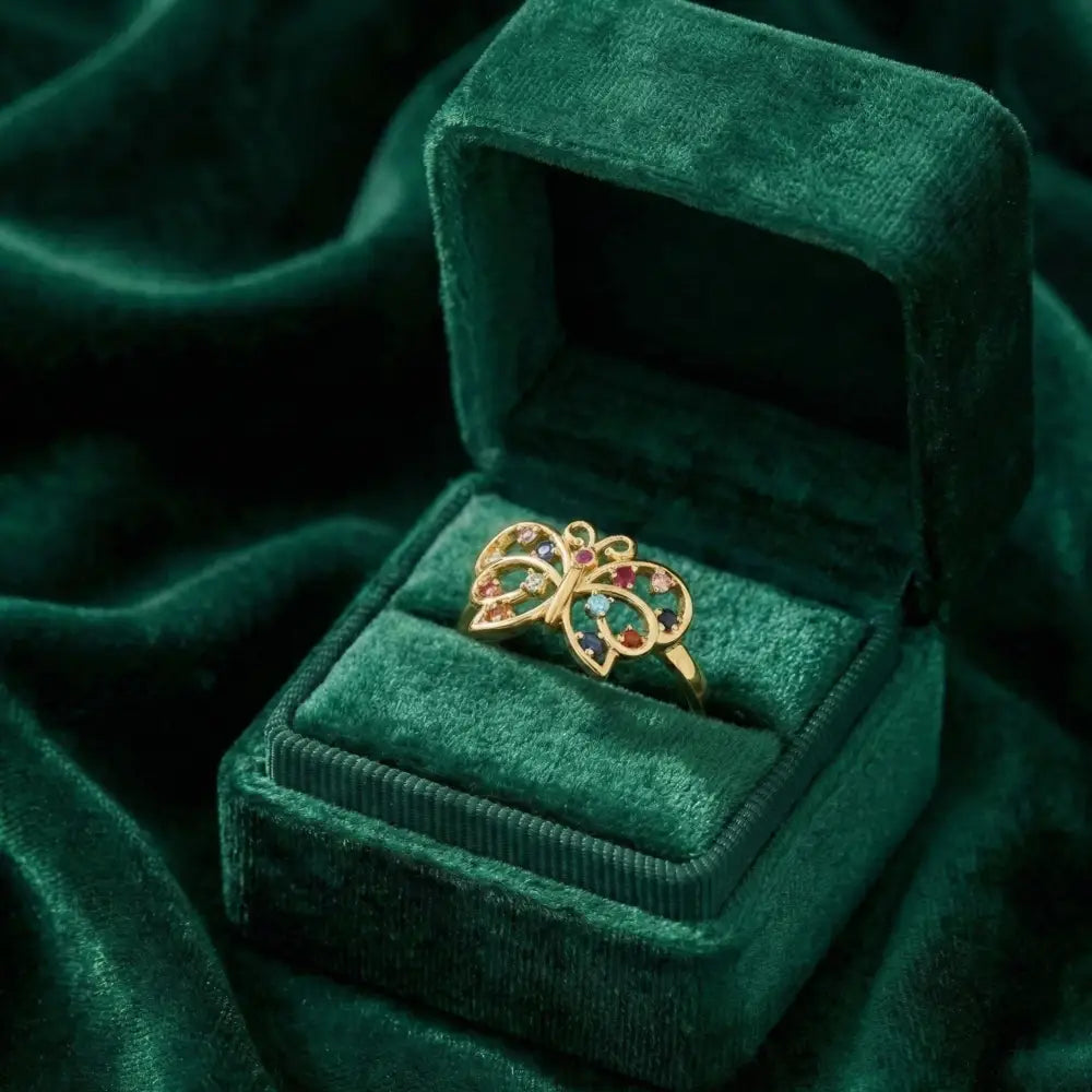 Spread your wings and shine! 💫 This enchanting **Butterfly Ring** captures the joy of nature with a splash of vibrant color. The openwork gold wings are detailed with delicate swirls and adorned with an array of **multi-colored stones**, creating a playful and sparkling rainbow effect that dances in the light. ✨