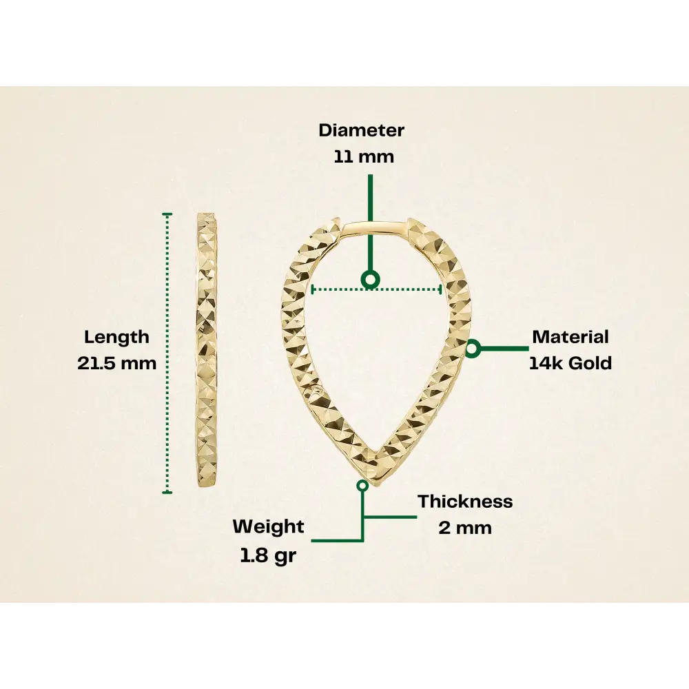 14K Gold Teardrop Triangle Hoop Earrings – Hinged Huggies, Diamond Cut