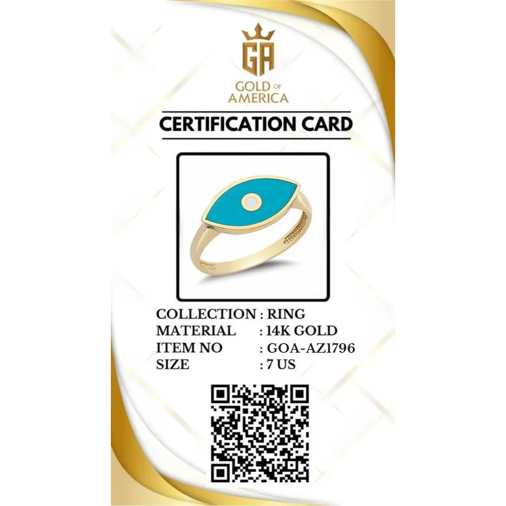 14K Handmade Turquoise Evil Eye Ring Modern Marquise Protection Band With Enamel Detail