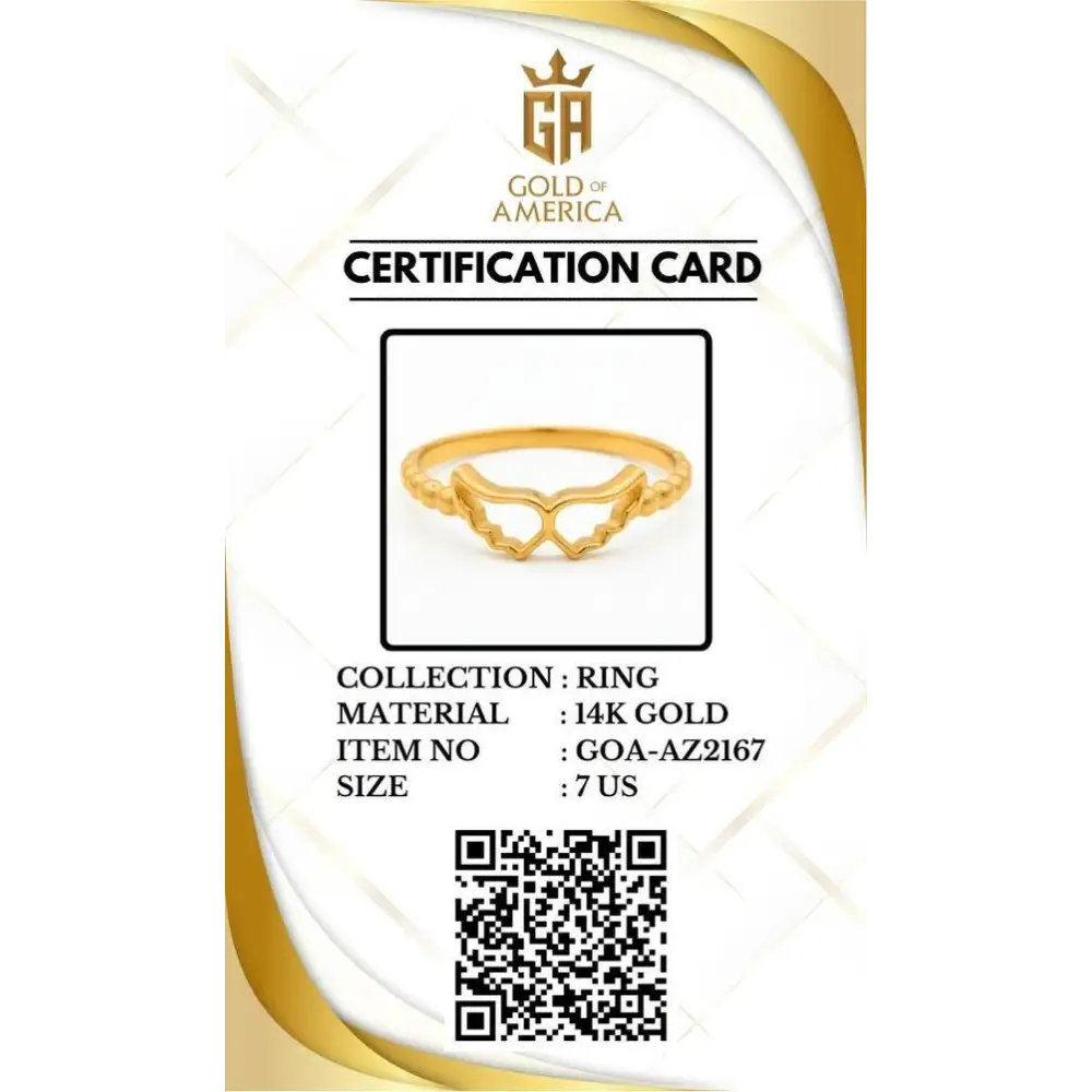 Embrace a touch of grace and symbolism with this Angel Wings Ring, crafted from genuine 14K solid gold. Designed to represent love, faith, and protection, this elegant piece makes a heartfelt gift for someone special — or a personal reminder of hope and strength. 💫