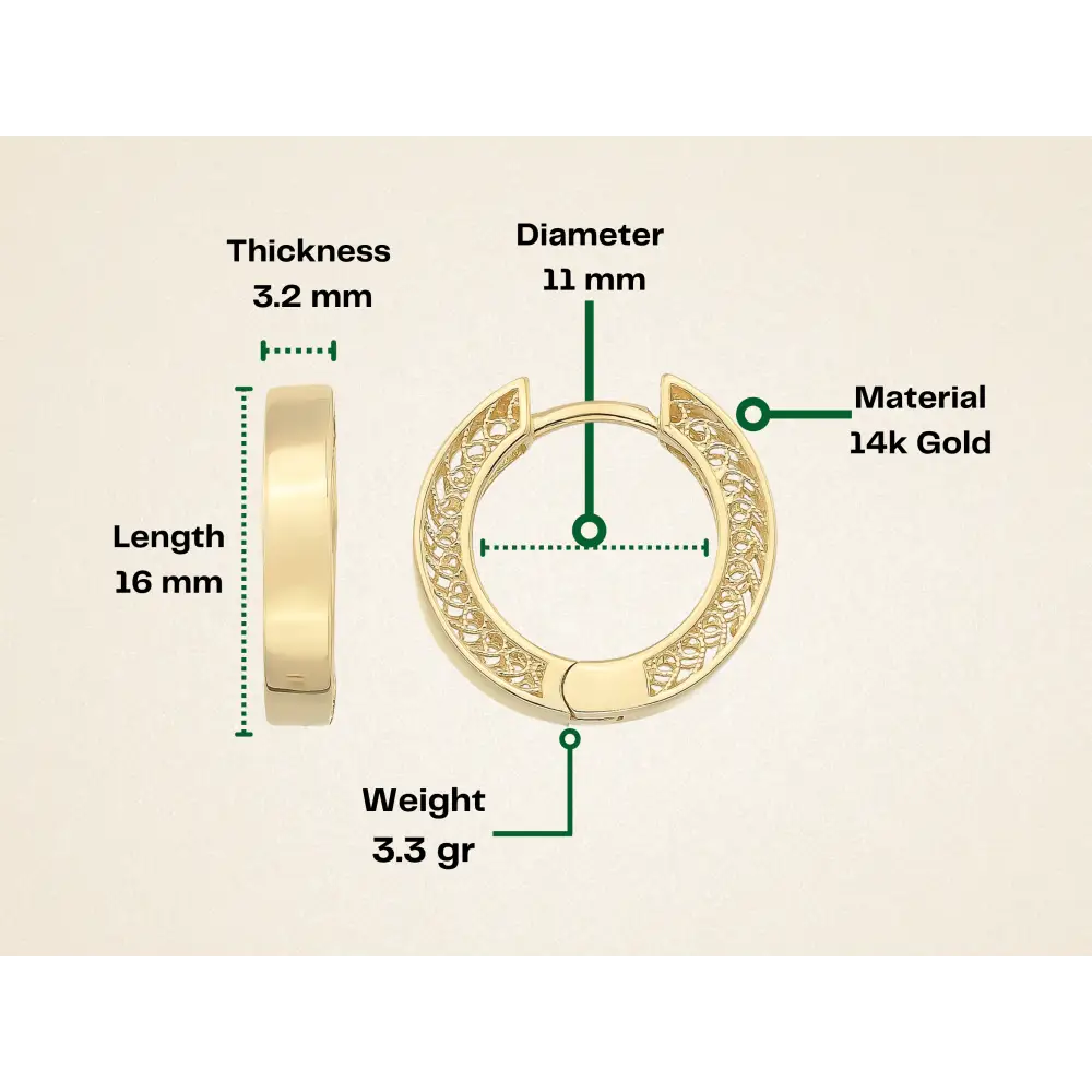 Here is hoop huggies earring 14K solid gold earrings. The 11 mm huggy hoops earring and chunky gold huggie is ideal for stacking or wearing alone.