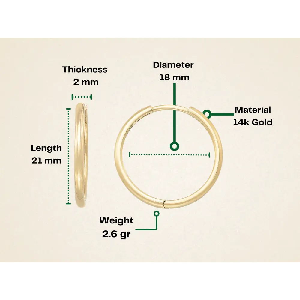14K Solid Gold Hoop Huggie Earrings | 21mm Everyday Stacking Hoops for Women | Set of 2