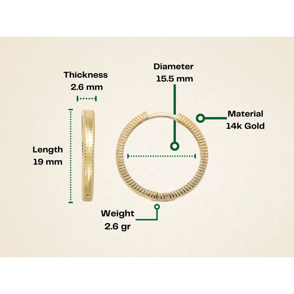 14K Solid Gold Ribbed Huggie Hoop Earrings | 19mm Everyday Hoops for Women