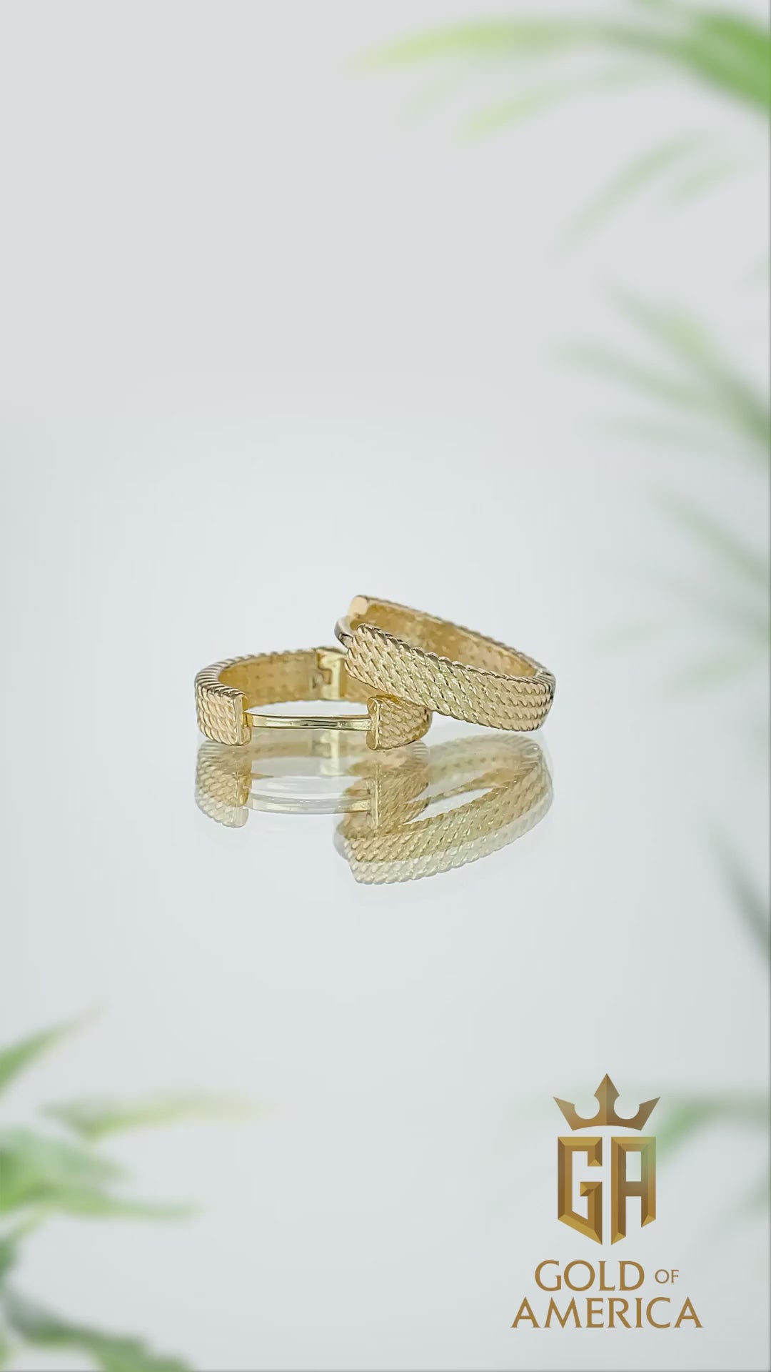 Texture that feels like fabric! ๐งต These stunning **Mesh Gold Hoops** feature a detailed woven design that looks like fine golden netting or chainmail. ๐ธ๏ธ Unlike smooth bands, this intricate "grid" texture catches the light in a subtle, sophisticated way, offering a rich and luxurious look.